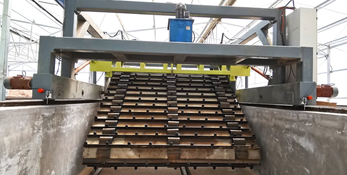 The compost turner’s chain forms a 45° angle with the bottom of the fermenter. Once the equipment is started, the chain continuously and gradually picks up material from the bottom of the fermenter, transports it to a higher level, and then drops it down. This allows the microorganisms in the material to obtain sufficient oxygen to decompose the organic matter while also dissipating excess heat, resulting in better and faster composting of the organic waste. The fallen material is then piled up again to make room for new material.
